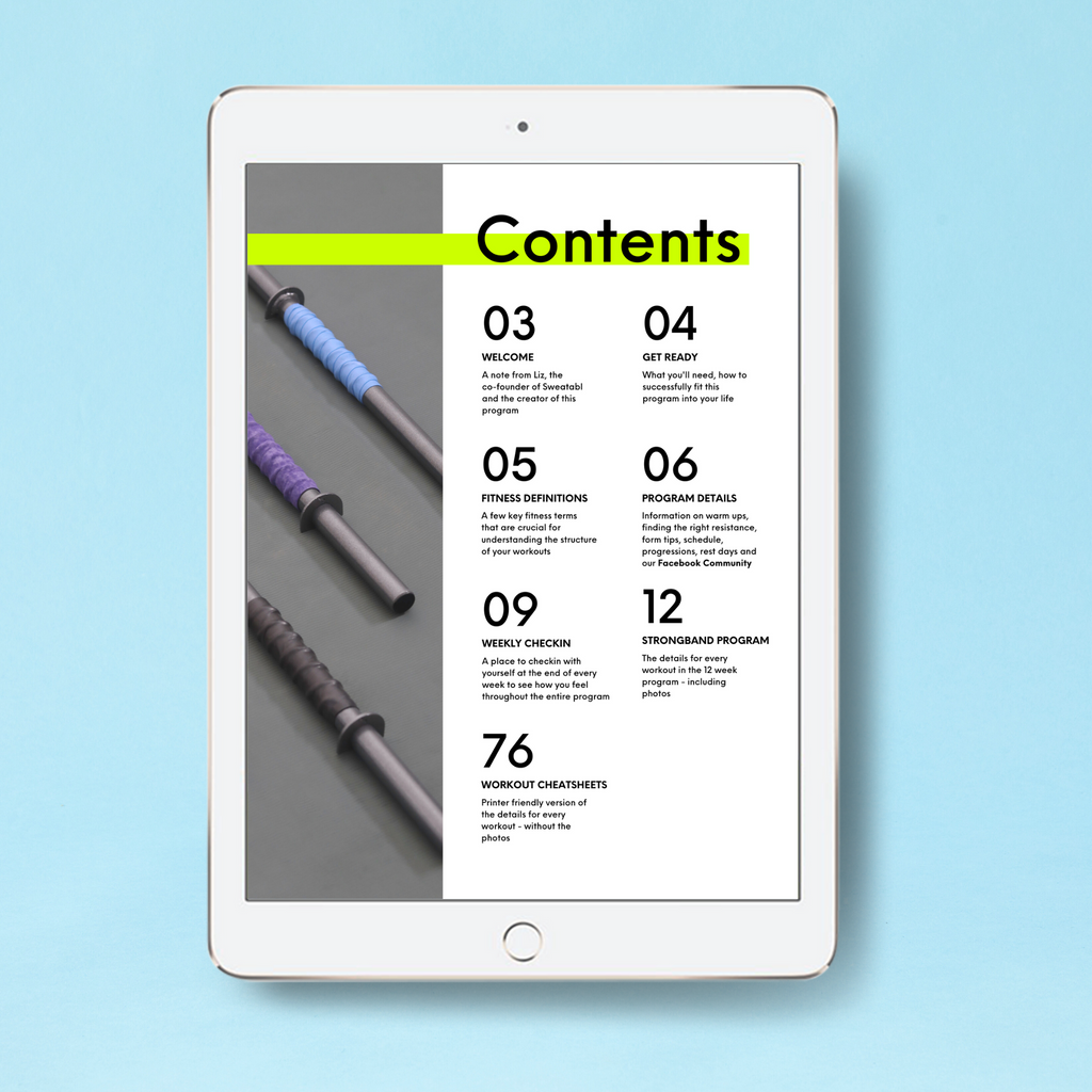 STRONGBAND Level 2 is a 12-week strength program that builds off of everything you learned in STRONGBAND Level 1 to take your home workouts to the next level. We dive right in with challenging resistance training principles so that you can feel stronger every single week.